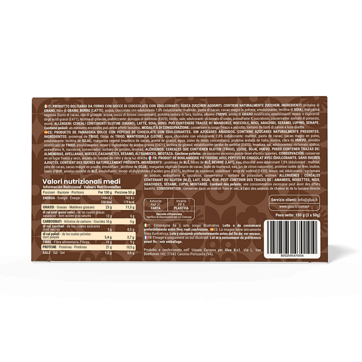 PRODOTTO DOLCIARIO DA FORNO CON GOCCE DI CIOCCOLATO CON EDULCORANTI